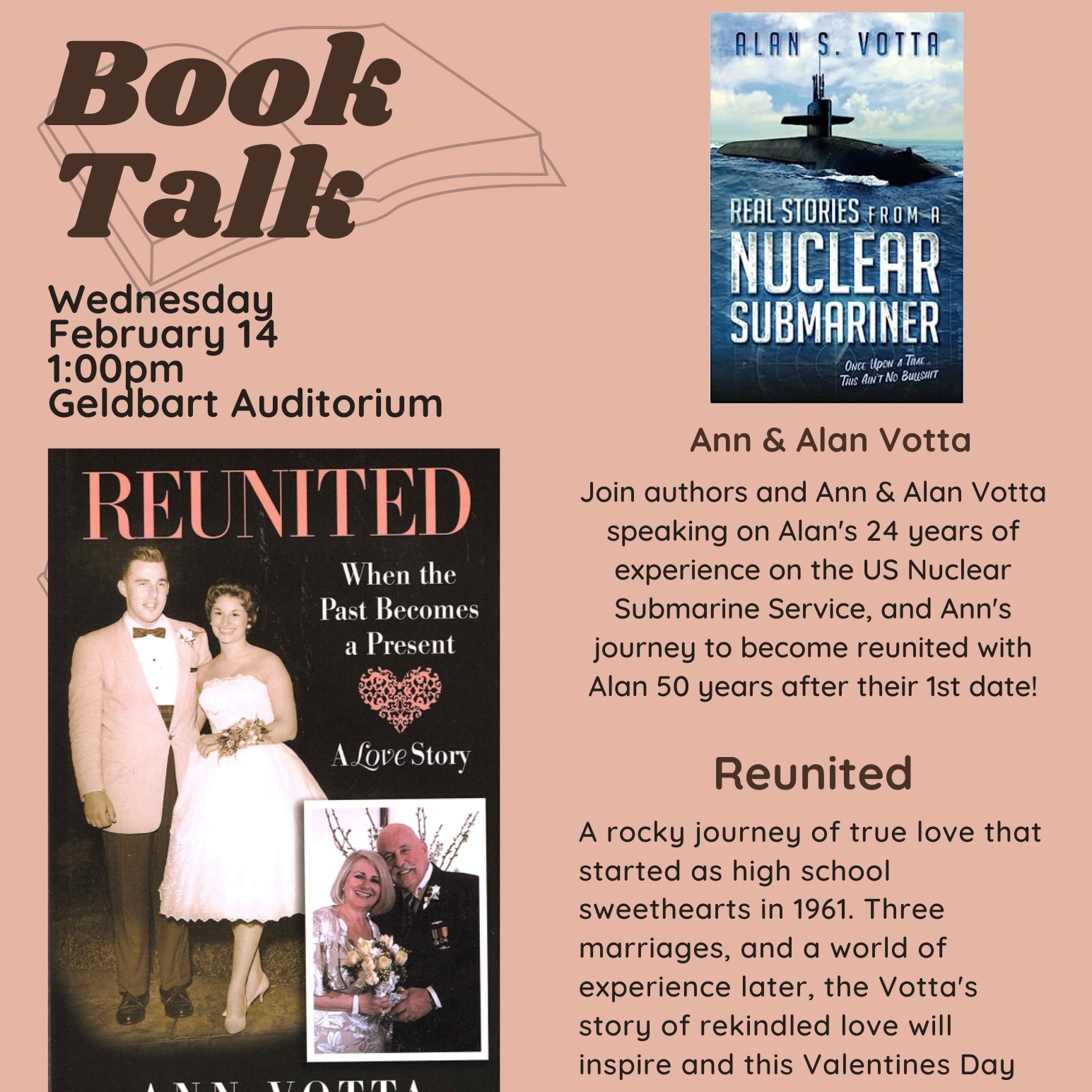 My husband, Alan Votta, and I will be doing a Book Talk at the Sarasota Selby Library on Wednesday, February 14th–Valentines’s Day. We are happy to be sharing our love story on this day to inspire others in the pursuit of lost love. The book was originally published in 2013 and has gained much attention on social media as a true account that happiness can come at any age. We have known one another for almost 70 years, we were high school sweethearts at 18, we married at 67, and now are in our 82nd year! We live every day with joy and laughter and gratitude for the multitude of blessings that have come our way. Our story is usually awe-inspiring to many who may have lost hope, and we love to share the adventurous account of our rekindling romance.